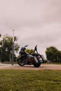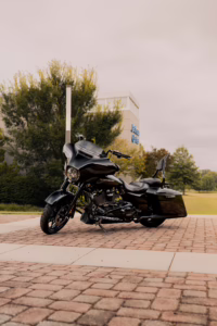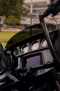 Finished in a sleek, blacked-out style with factory saddlebags, premium infotainment system, touchscreen navigation, ABS, cruise control, and more!